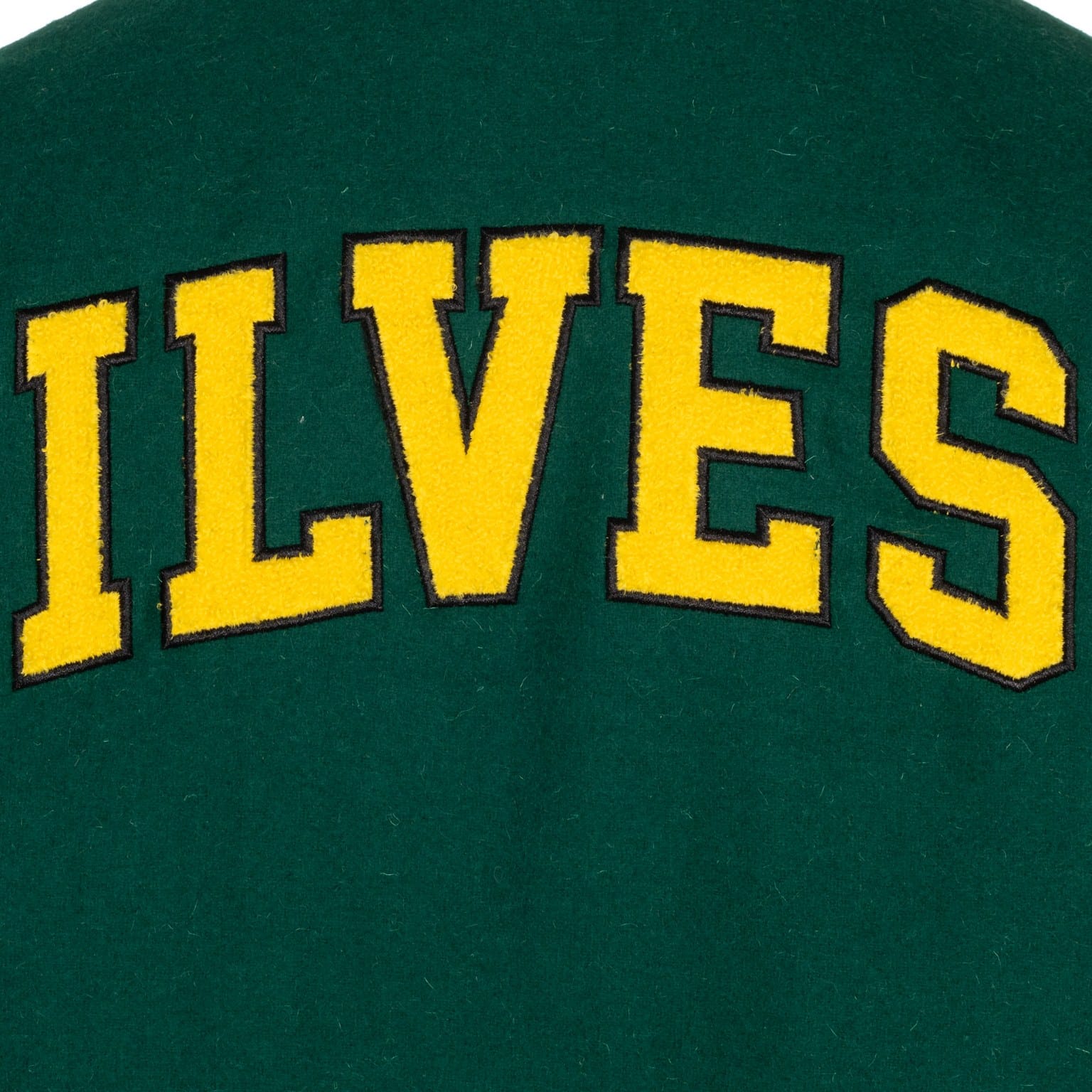 Vihreä baseball-takki luonnonvalkoisilla nahkahihoilla. Rinnassa chenille-merkkauksella tehty seuran alkuperäinen Ilves-logo, joka koristaa kauden 2024-25 3. pelipaidan rintaa. Selässä chenille-merkkauksella tehty ILVES-teksti. Takki on unisex-malli.