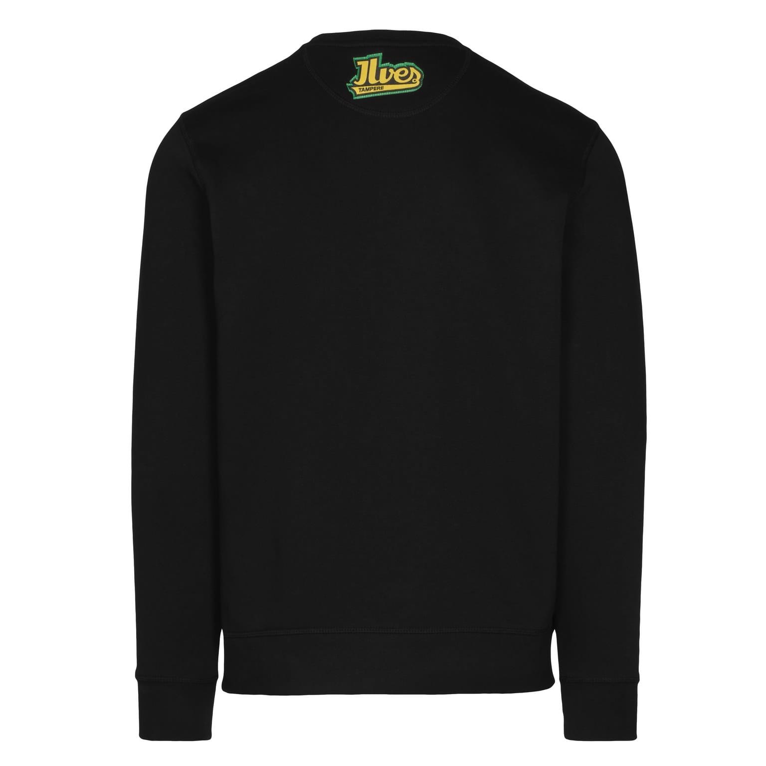 Musta collegepaita, jossa edessä seuratunnus sekä niskassa Ilves-kaunoteksti merkki.