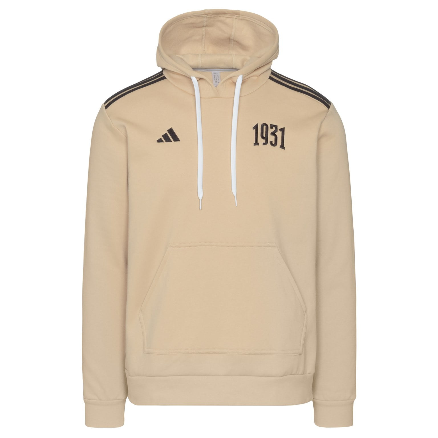Adidaksen valmistama hiekanvärinen huppari mustilla raidoilla, jossa rinnassa brodeerattuna 1931-seuratunnus.