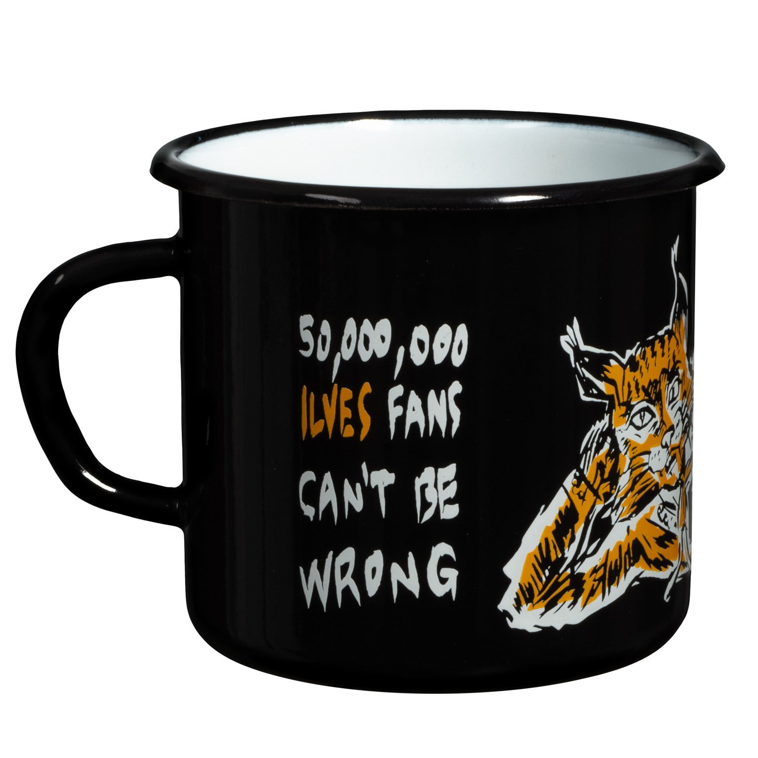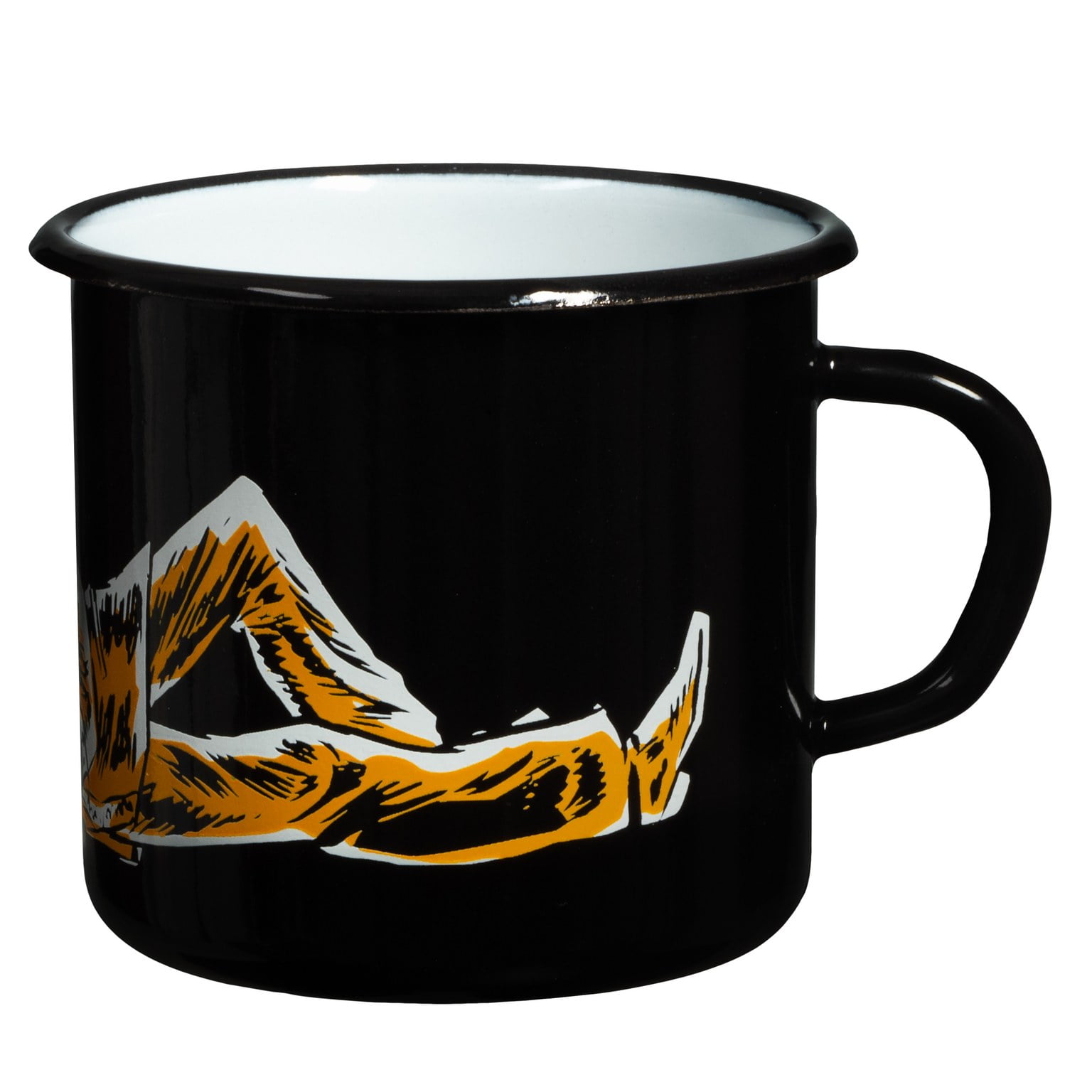 Musta emalimuki, jossa painatus kyljessä ja pohjassa. Valmistusmaa Tsekki.