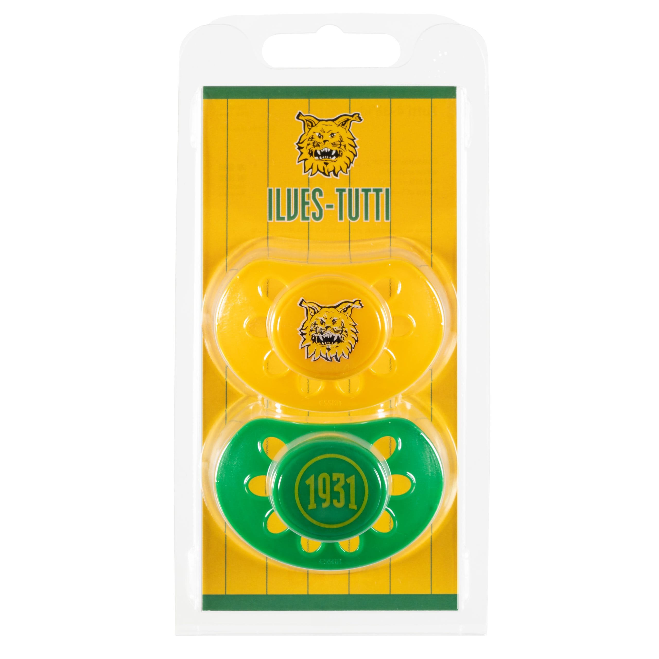 Paketissa keltainen ja vihreä Ilves-tutti.