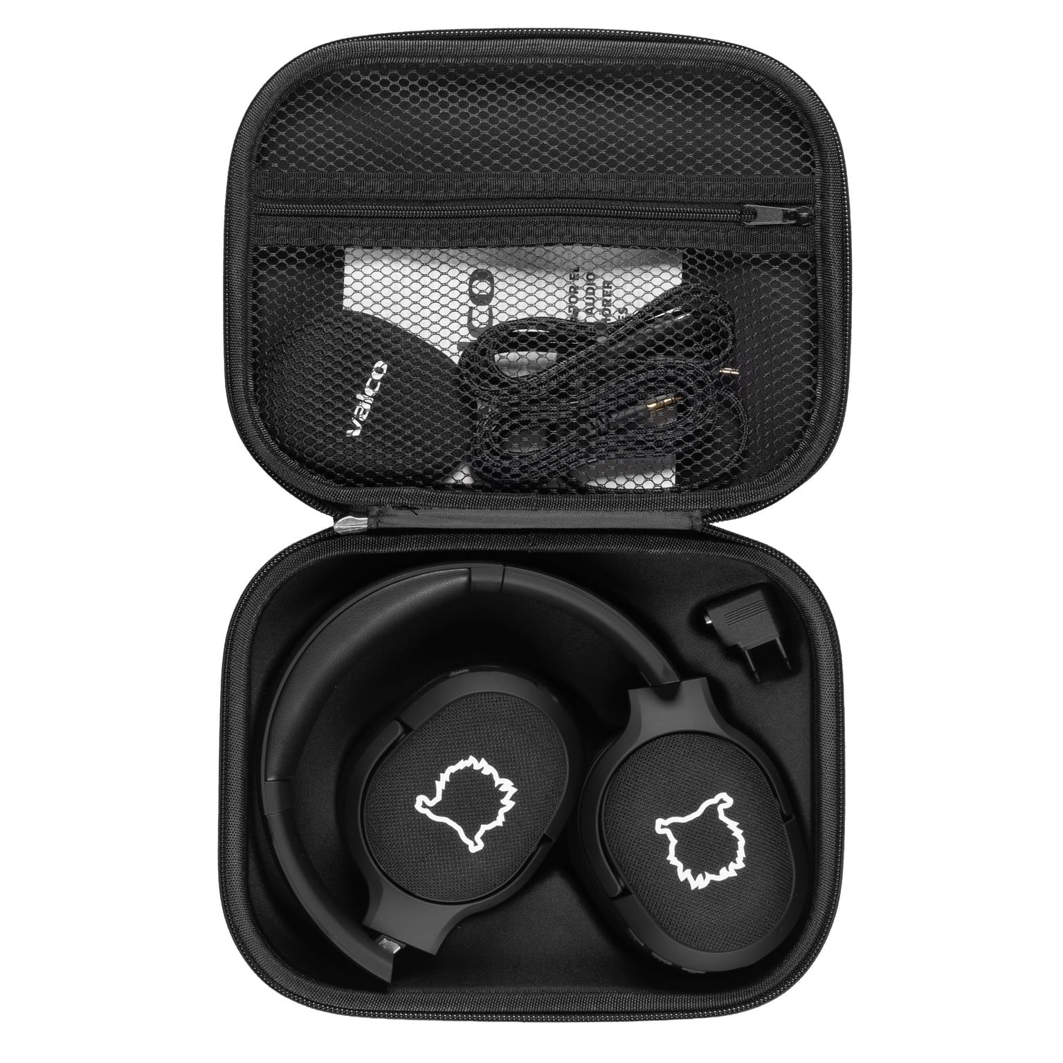 Kyseessä ei ole halpamuovista valettu kiinalainen fanituote, johon on lätkäisty tarra vinoon. Nämä ovat suomalaisen Valcon uusimmat VMK25.2-vastamelukuulokkeet. Niitä on vain nysvätty Tampereella hieman normaalia enemmän, jotta ne sopivat keltavihreään päähän. Ilves-logot löytyvät magneetilla kiinnittyvistä sivukuorista ja jämäkästä matkakotelosta.