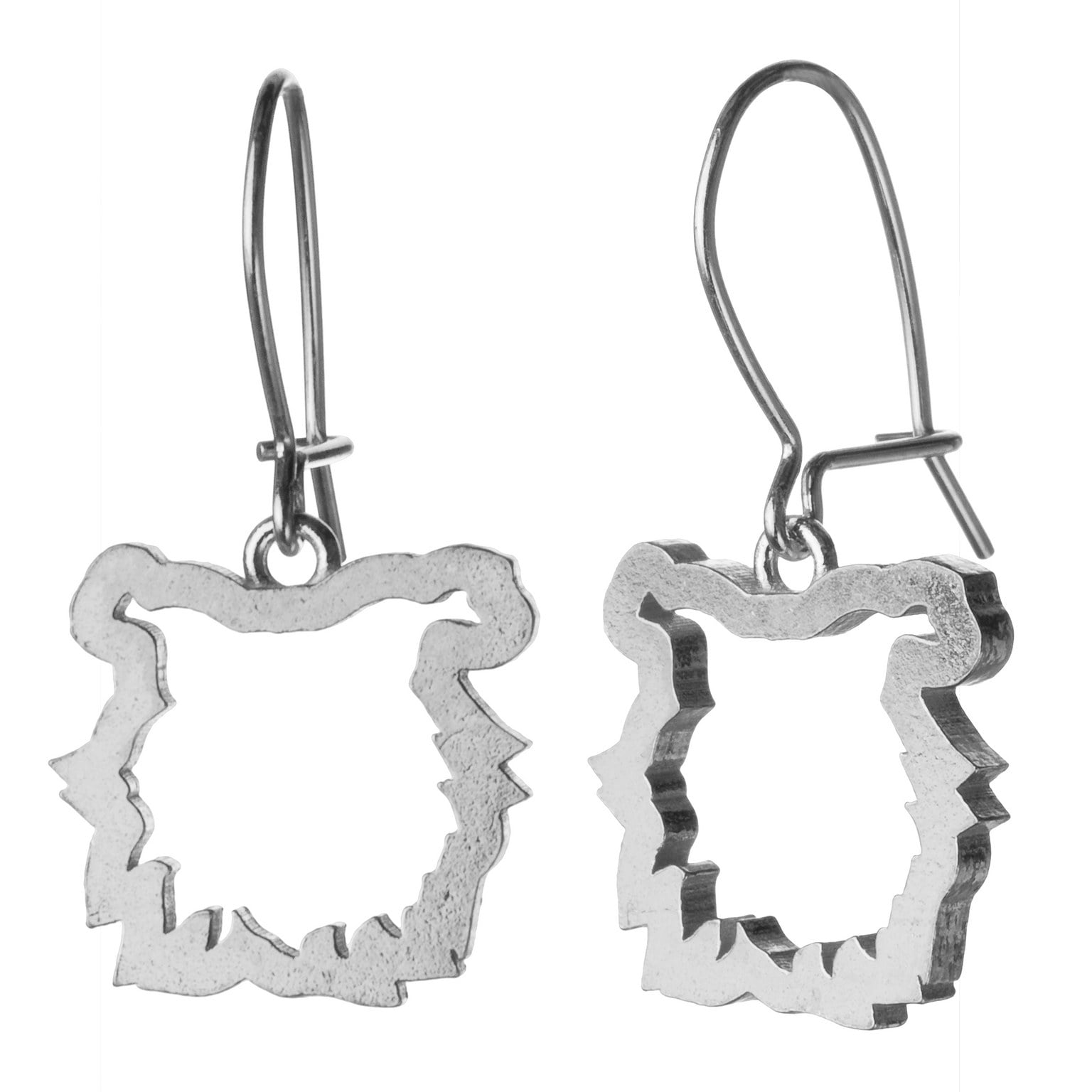 Hopeasta valmistetut Ilves-riipuskorvakorut. Saatavilla hopean värisenä tai kullattuna. Korun leveys n. 1,5cm. Valmistettu Suomessa. Koru toimitetaan korulaatikossa. Ei sisällä nikkeliä.