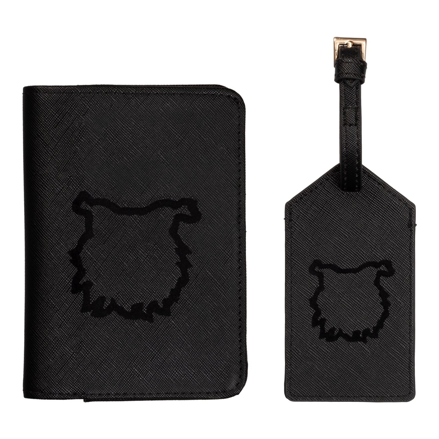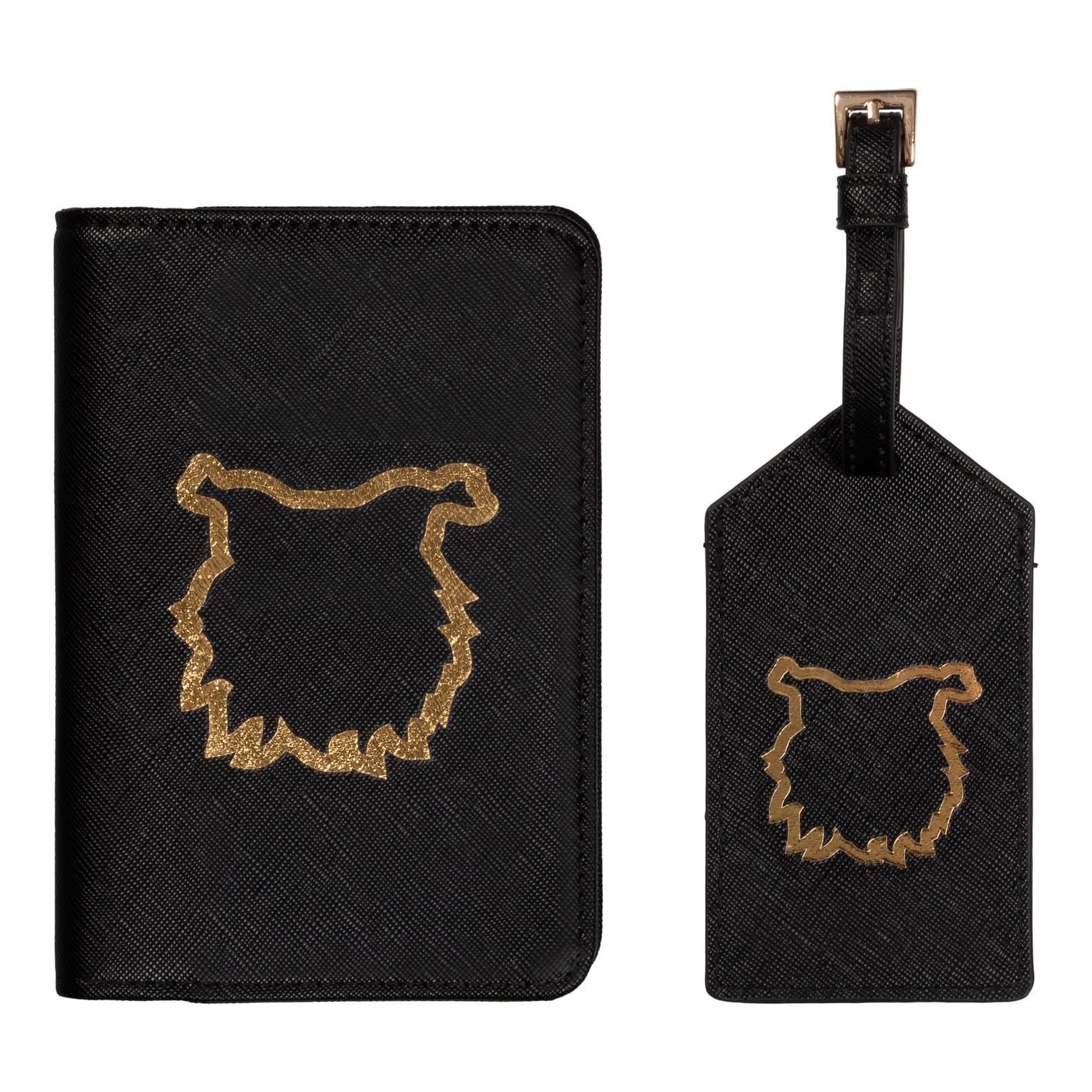 Keinonahkainen matkajärjestelmäsetti, jossa painettuna kultainen tai musta Ilves-ääriviivalogo. Setti sisältää kaksi osaa: passikuoren ja matkalaukkutägin.