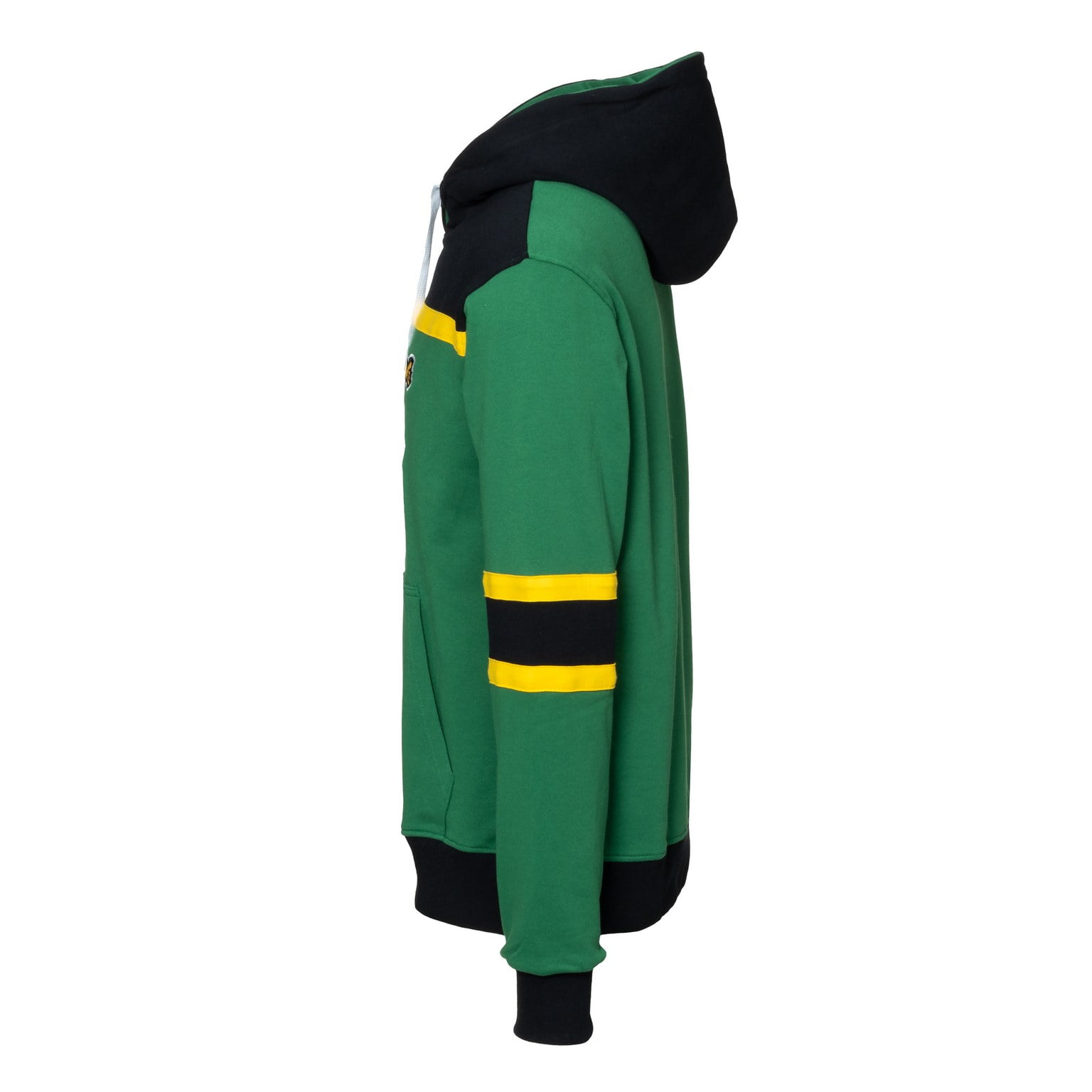 Aikuisten vihreä pelipaitahuppari, keltamustilla raidoilla ja isolla seuratunnuksella. Edessä avoin iso tasku. Valmistettu Portugalissa.