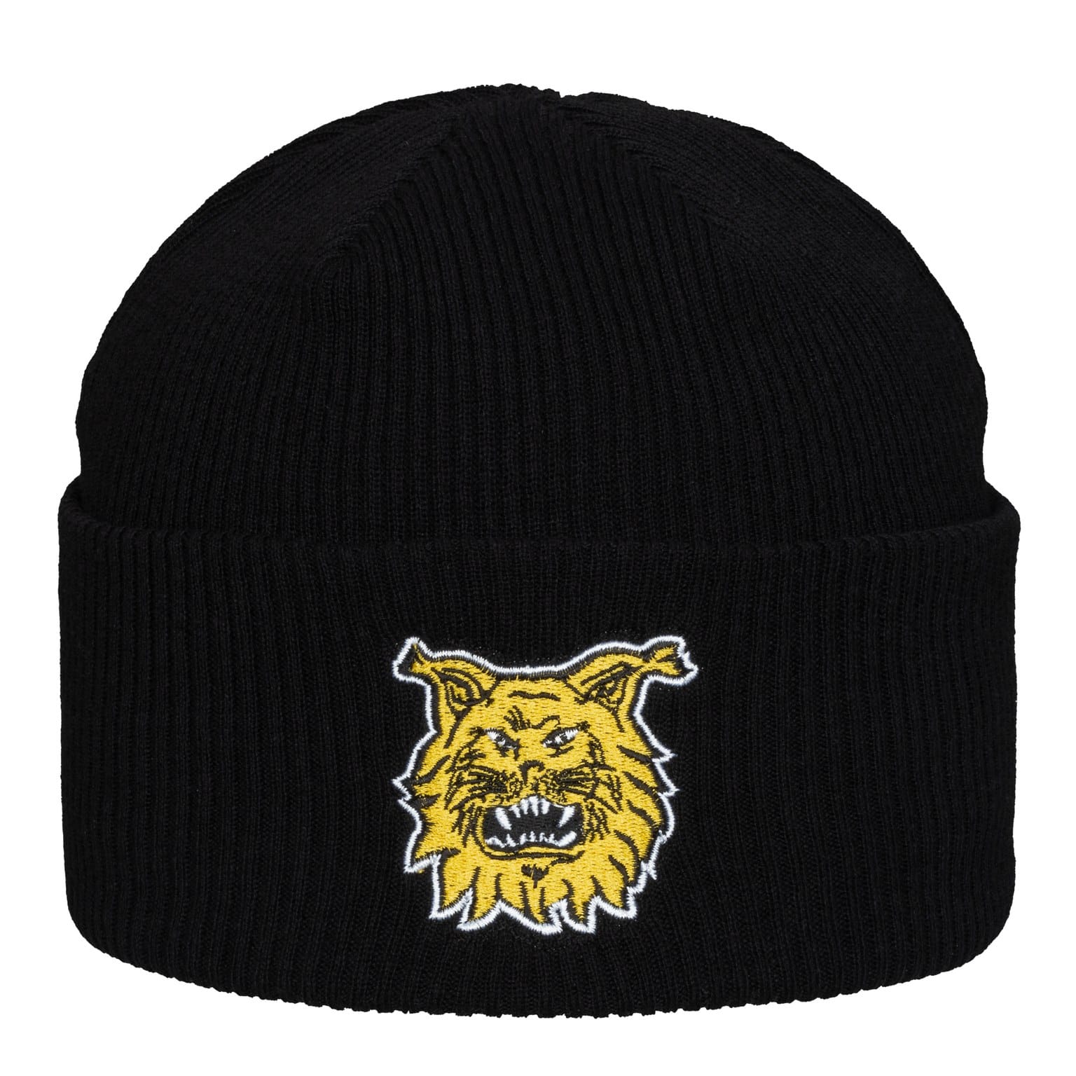 Musta pipo, jossa brodeerattuna Ilves-seuratunnus. Tuotteella Avainlippu-tunnus. Valmistettu Suomessa.