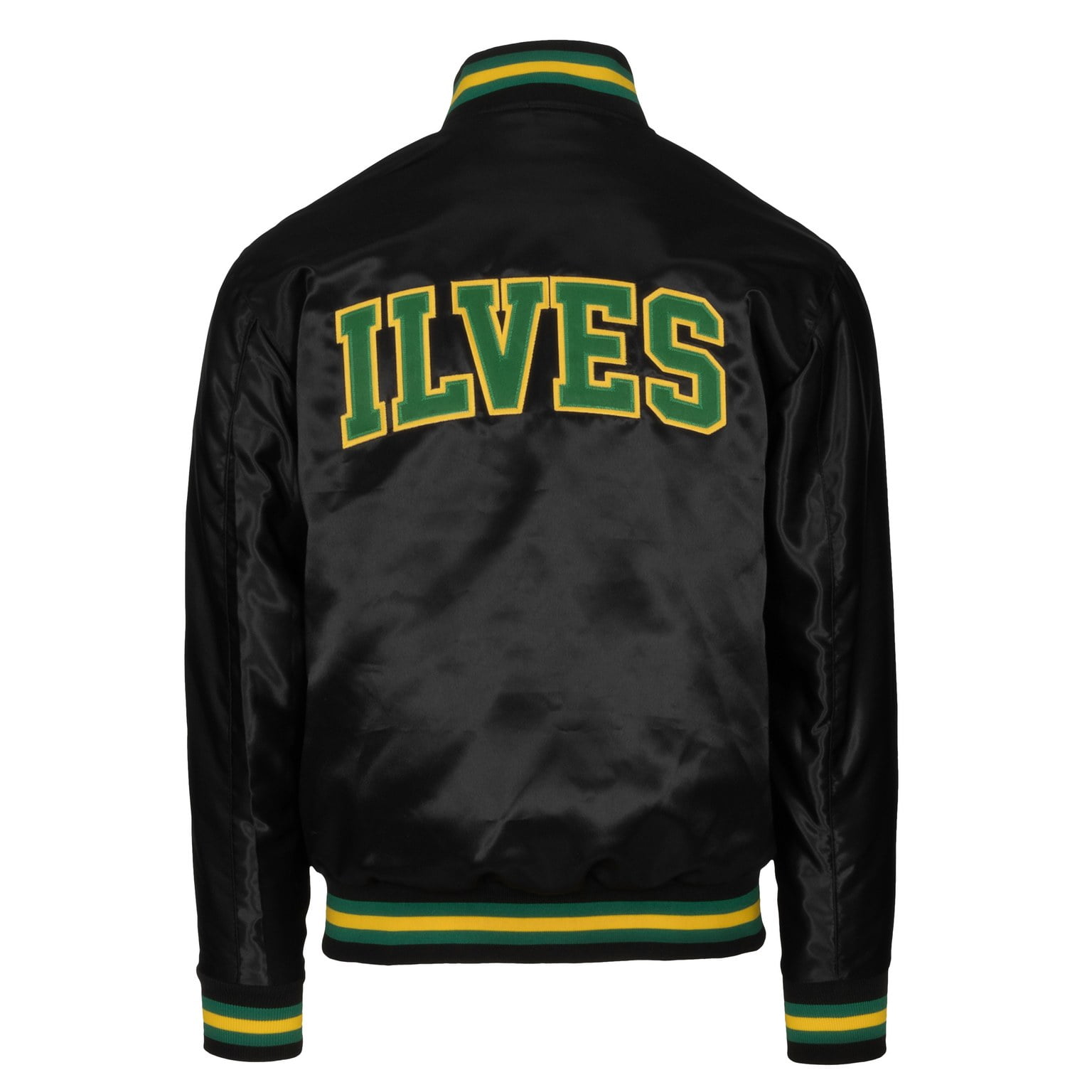 Musta satiinitakki, jossa rinnassa brodeerattu logo, jonka keltavihreät reunaviivat ovat saaneet inspiraationsa kausien 1977-1979 pelipaitojen logosta. Selässä applikoituna ILVES-teksti. Takissa povitasku.