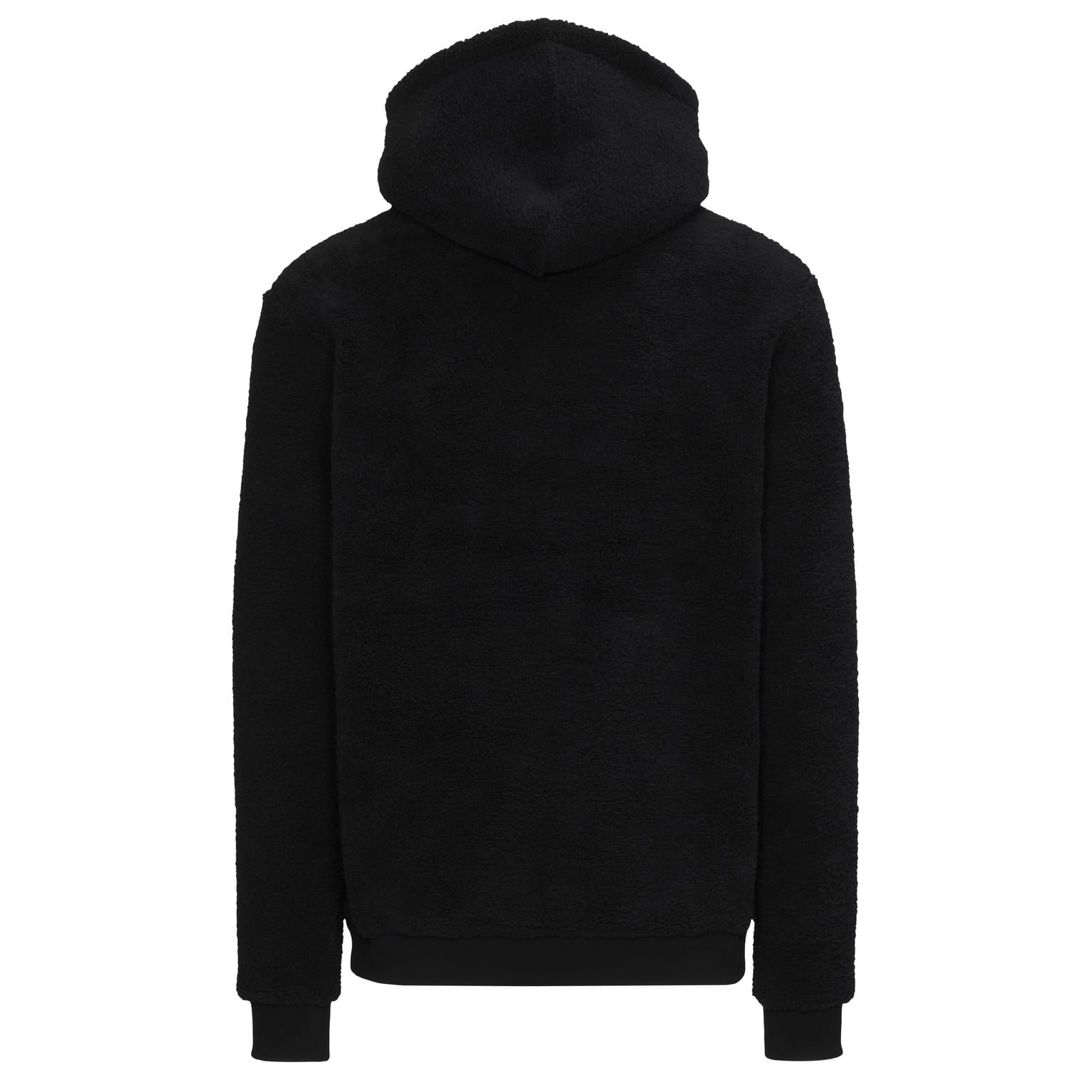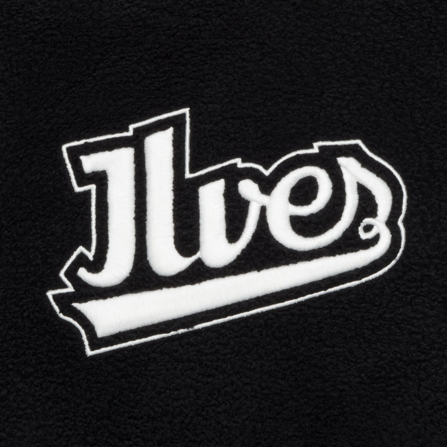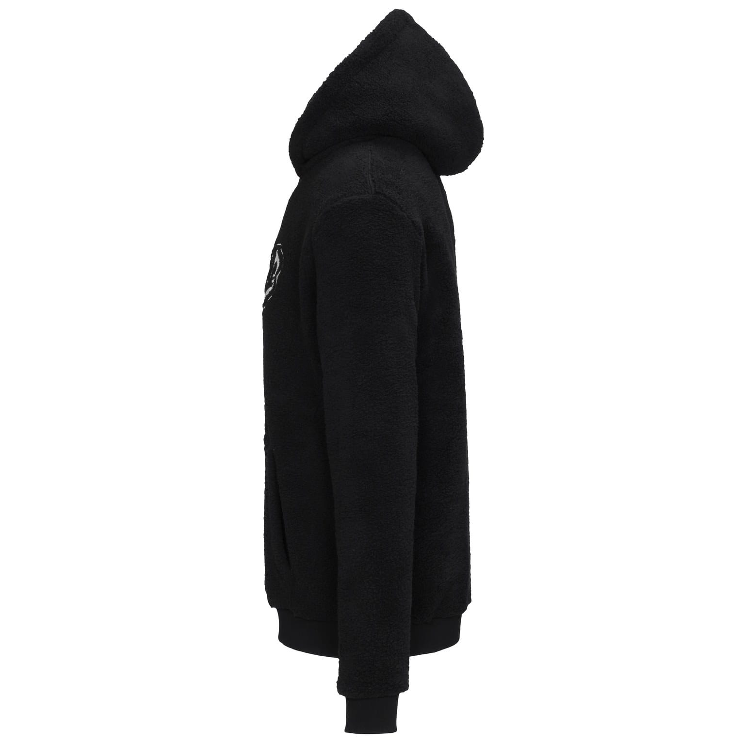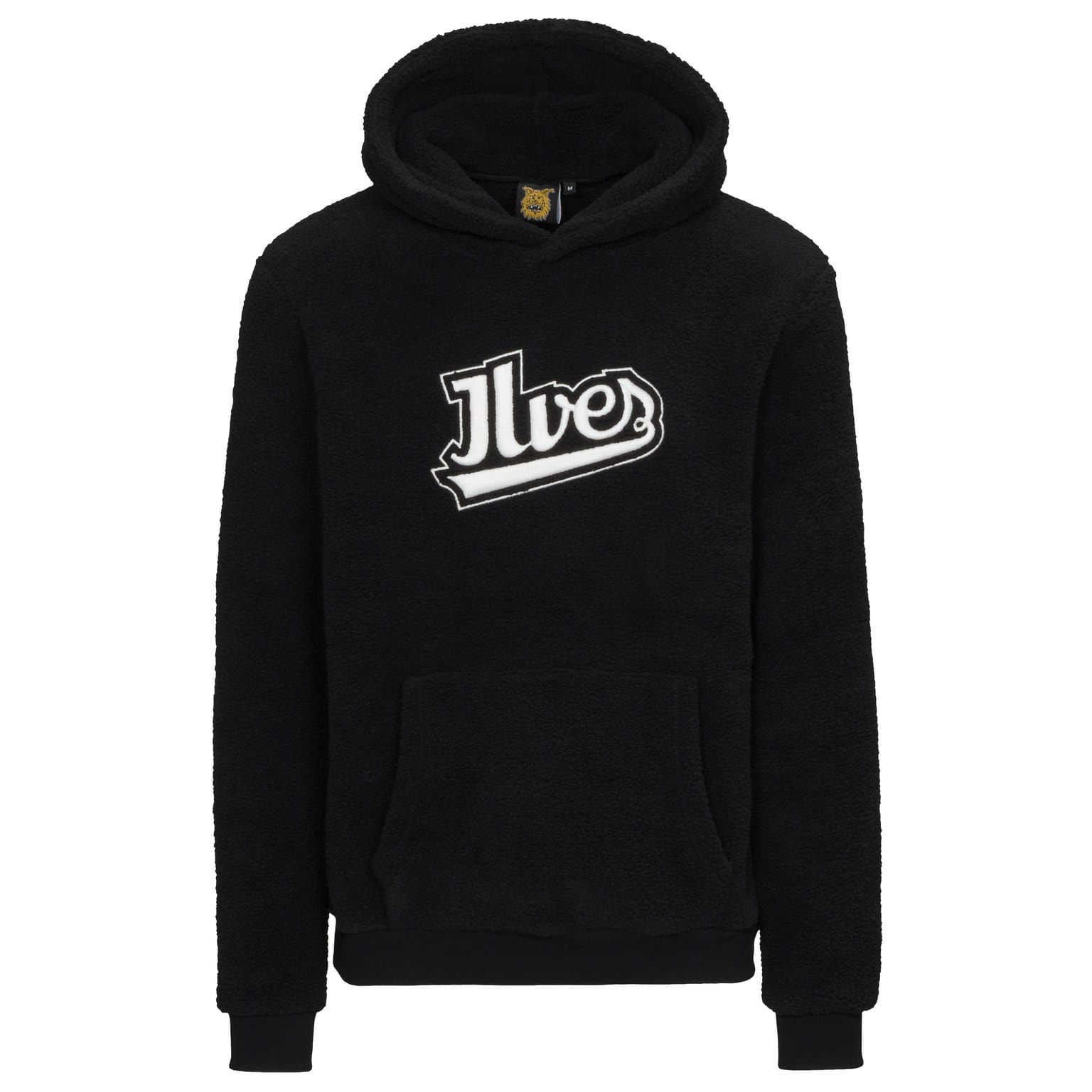 Pehmeä musta teddy-huppari, jossa edessä brodeerattuna ILVES-teksti.