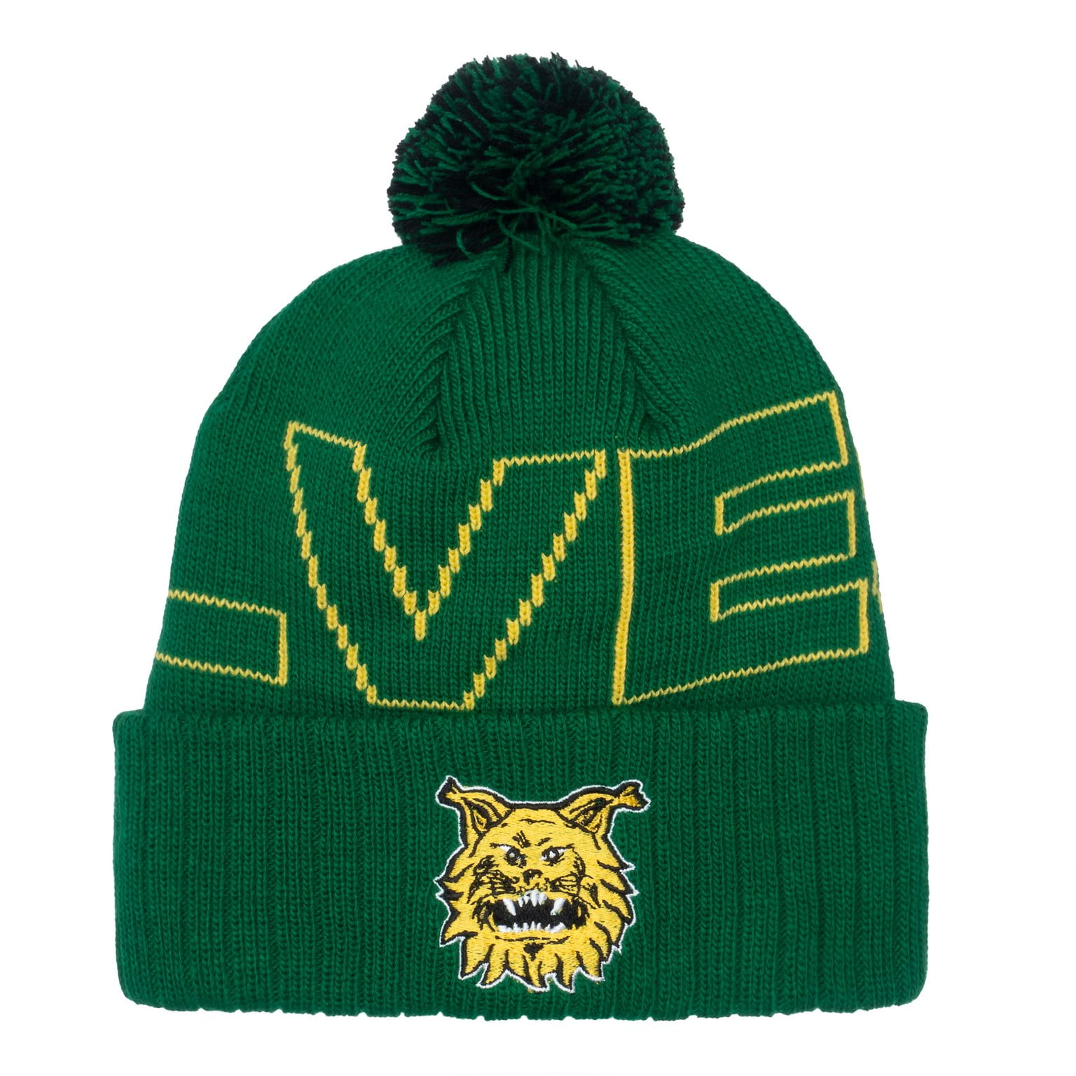 Vihreä tupsupipo, jossa brodeerattu logo ja keltaine Ilves-teksti.