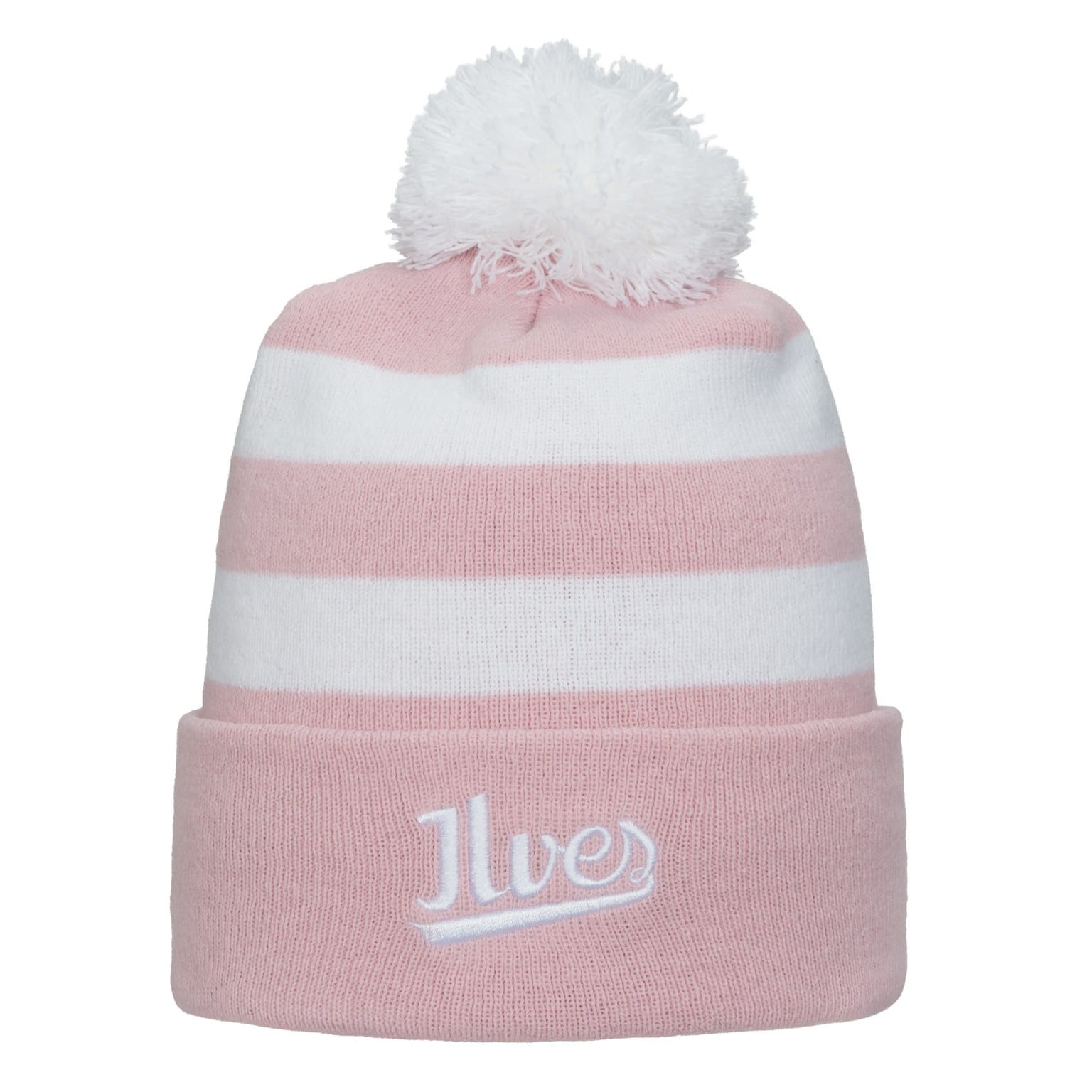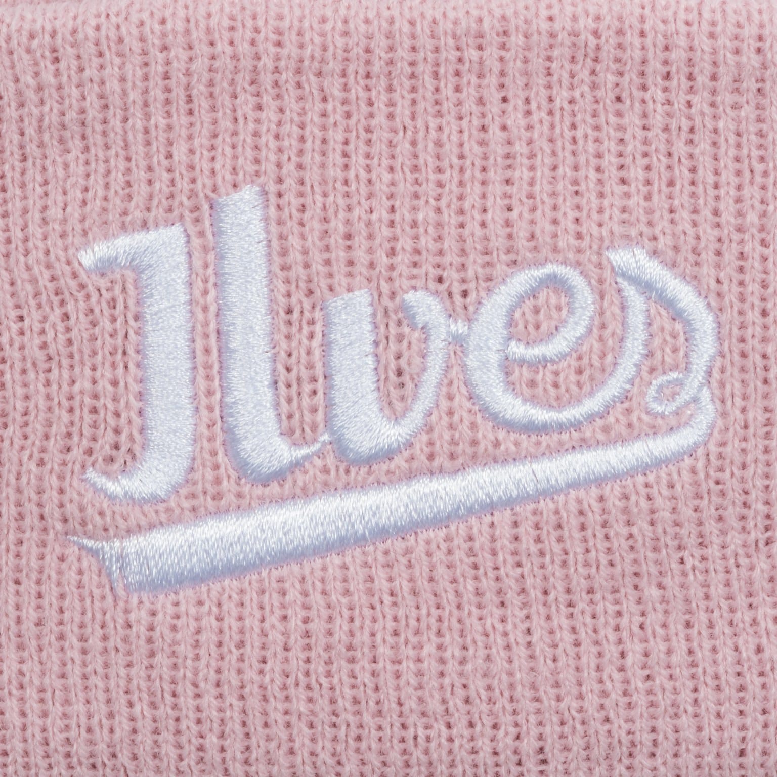 Vaaleanpunavalkoinen tupsupipo, jossa edessä Ilves-kaunoteksti valkoisella brodeerattuna.