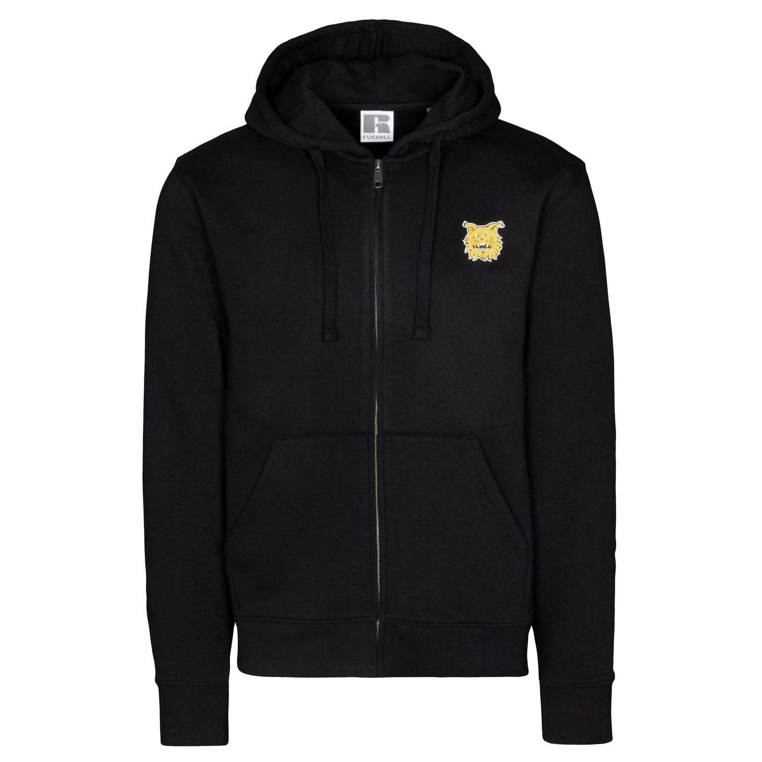 Musta vetoketjuhuppari, jossa vasemmalla rintamuksessa painettu seuratunnus. Edessä taskut, vetoketju sekä hupussa narukiristys.